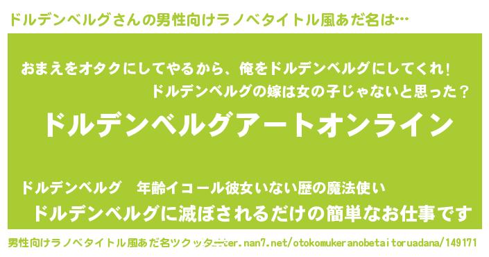 | 女子向けラノベタイトル風あだ名 | 『誰かこのドルデンベルグを説明してください! ~契約から始まるウェディング~』 |