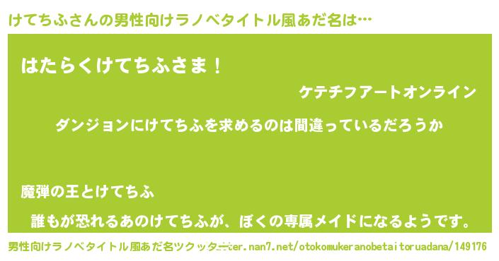 | 女子向けラノベタイトル風あだ名 | 『けてちふは平凡を望む』 |