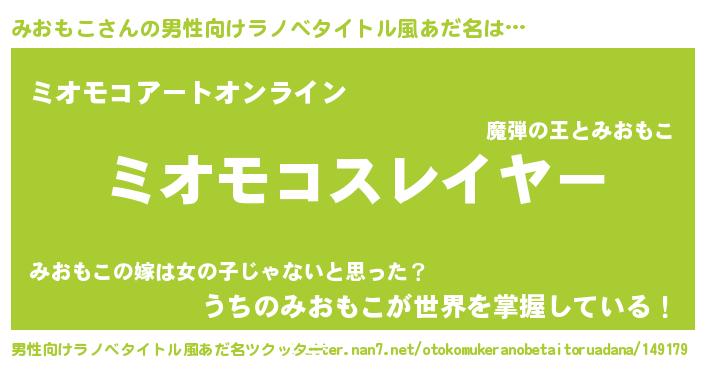 | 胡散臭い通販商品みたいなあだ名 | 『必ず成功するブレスレット…その名も「みおもこ」』 |