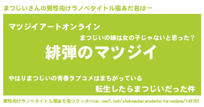 | 胡散臭い通販商品みたいなあだ名 | 『必ず成功する霊験あらたかなお札…その名も「まつじい」』 |