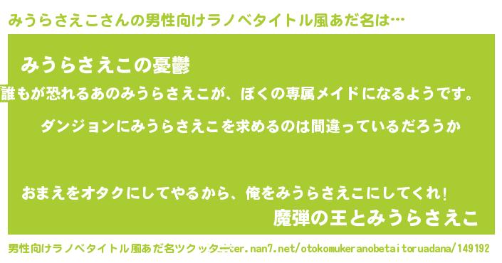 | 意味不明あだ名 | 『とにかく怪しいみうらさえこ』 |