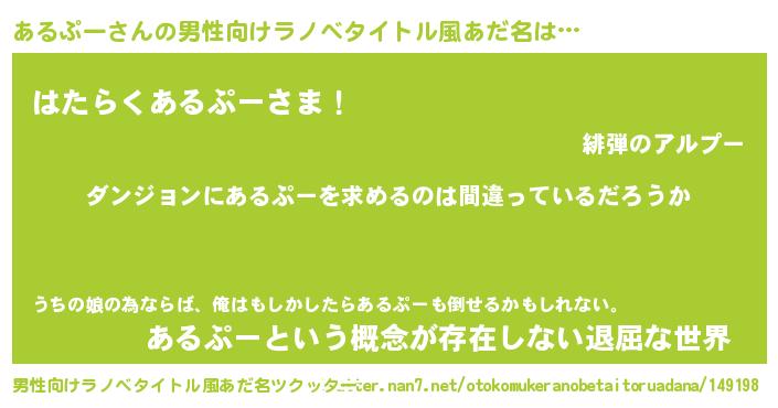 | 意味不明あだ名 | 『とにかく怪しいあるぷー』 |