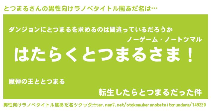 | ヒーロー風カッコイイあだ名 | 『魔戒騎士トツ』『正義の使者とつまる』 |