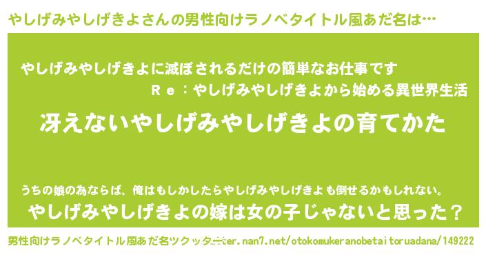 | 料理風あだ名 | 『やしげみやしげきよの炊き込みご飯』 |