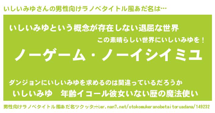 いしいみゆさんの男性向けラノベタイトル風あだ名をツクッター!