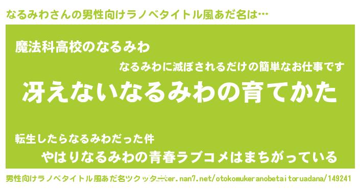 | ヒーロー風カッコイイあだ名 | 『サイバー戦士ナルミワ』『魔戒騎士ナル』 |