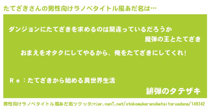 | 女子向けラノベタイトル風あだ名 | 『たてざき夫妻のなれそめ』 |