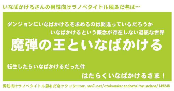 | 女子向けラノベタイトル風あだ名 | 『乙女ゲームの破滅フラグしかない悪役いなばかけるに転生してしまった…』 |
