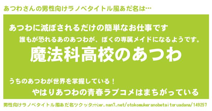 | 意味不明あだ名 | 『自称あつわ』『あつわフォーエバー』 |