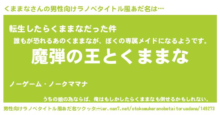 | 女子向けラノベタイトル風あだ名 | 『乙女ゲームの破滅フラグしかない悪役くままなに転生してしまった…』 |