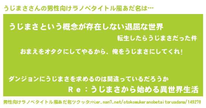 | ヘコむあだ名 | 『うじまさ(小並感)』『うじっ子』 |