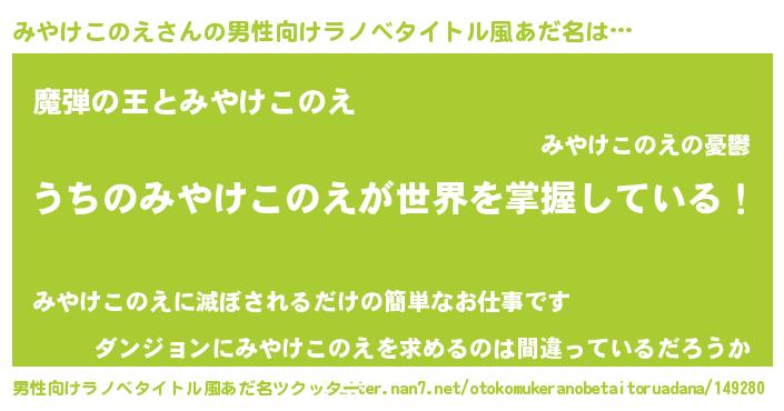 | 女子向けラノベタイトル風あだ名 | 『男装みやけこのえの憂鬱な任務』 |