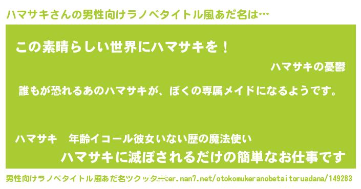 | ファンタジー風あだ名 | 『ハマディッシュ』『ヴァルハマーナ』 |