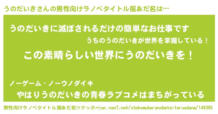 | 女子向けラノベタイトル風あだ名 | 『悪役うのだいきに転生したようですが、知った事ではありません』 |