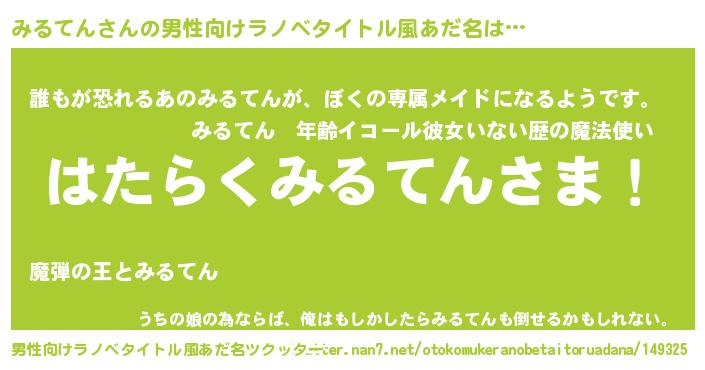 | 胡散臭い通販商品みたいなあだ名 | 『絶対に幸福をもたらす健康食品…その名も「みるてん」』 |