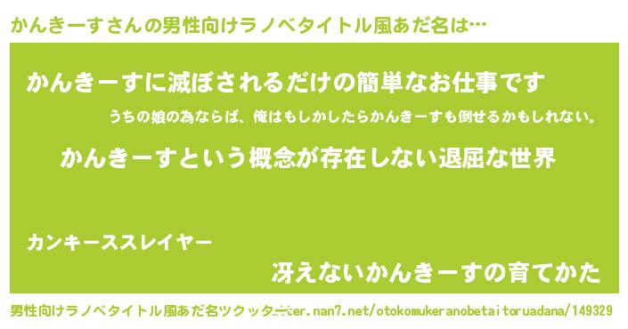 | 意味不明あだ名 | 『永久保存かんきーす』 |