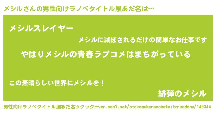 | 女子向けラノベタイトル風あだ名 | 『メシル伯爵の花嫁』 |