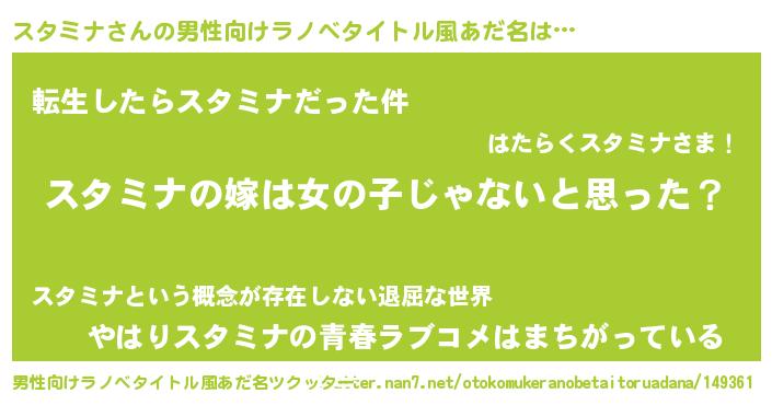 | 女子向けラノベタイトル風あだ名 | 『スタミナ様がみてる』 |
