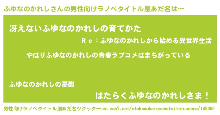 | 女子向けラノベタイトル風あだ名 | 『ふゆなのかれし伯爵の花嫁』 |