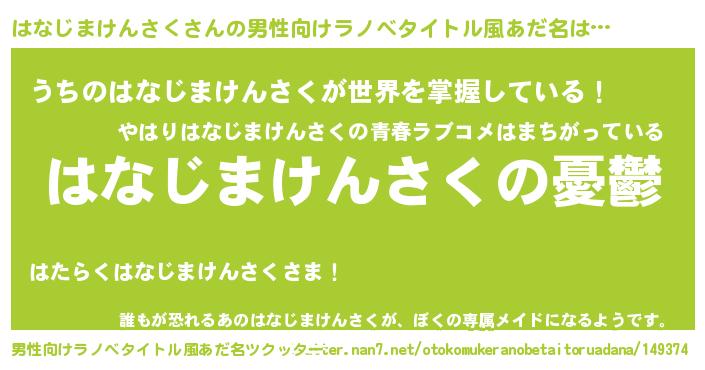 | 女子向けラノベタイトル風あだ名 | 『(仮)はなじまけんさくのやんごとなき事情』 |