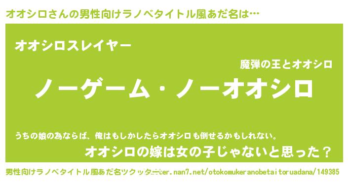 | 女子向けラノベタイトル風あだ名 | 『オオシロ恋絵巻』『オオシロの婚約者』 |