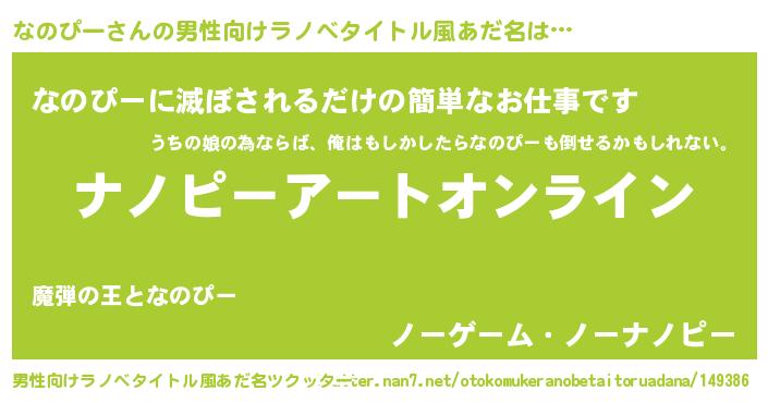 | ヒーロー風カッコイイあだ名 | 『スーパーナノピー』『仮面ナノダー』 |