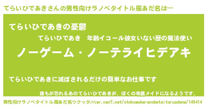 | ヒーロー風カッコイイあだ名 | 『天空の使者てらいひであき』 |