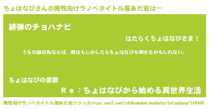 | 女子向けラノベタイトル風あだ名 | 『ちょはなびの婚約者』『闇のちょはなび』 |