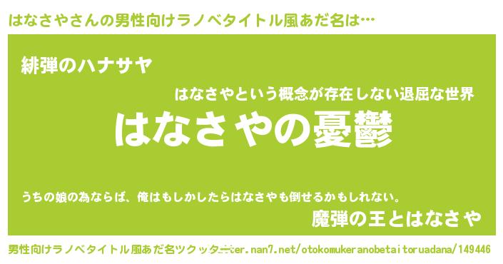 | 女子向けラノベタイトル風あだ名 | 『はなさや姫と円卓の騎士』 |
