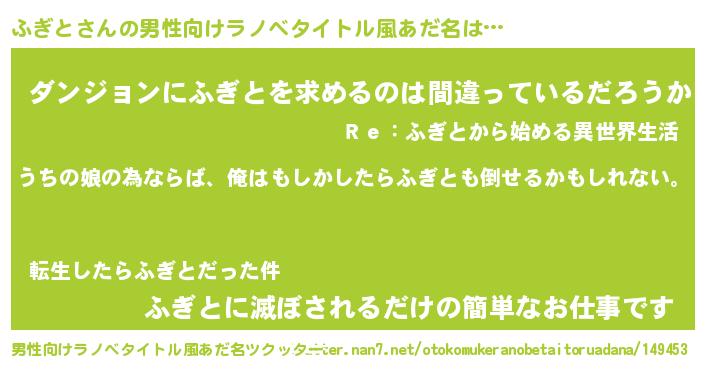 | 胡散臭い通販商品みたいなあだ名 | 『運命の人と巡り会える高級そうな壺…その名も「ふぎと」』 |
