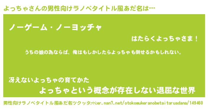 | 女子向けラノベタイトル風あだ名 | 『よっちゃの婚約者』 |
