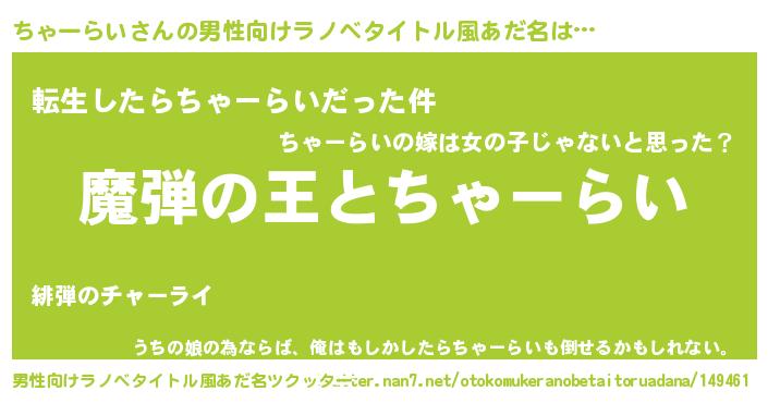 | 伝説のあだ名 | 『秘められし陰陽師ちゃーらい』 |