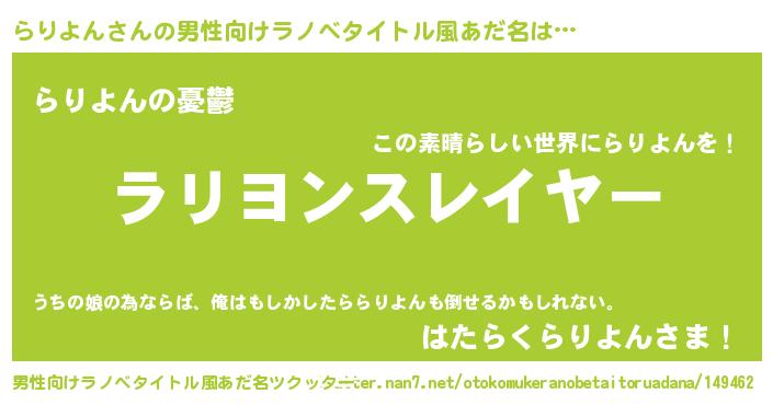 | 胡散臭い通販商品みたいなあだ名 | 『必ず成功するブレスレット…その名も「らりよん」』 |