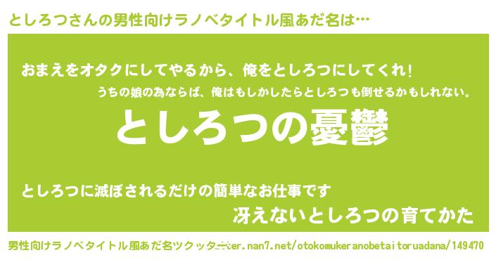 としろつさんの男性向けラノベタイトル風あだ名をツクッター!