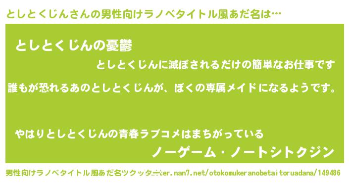 | 意味不明あだ名 | 『永久保存としとくじん』 |