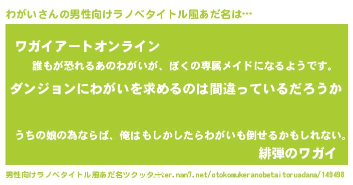 | 女子向けラノベタイトル風あだ名 | 『わがいは平凡を望む』『わがいの婚約者』 |