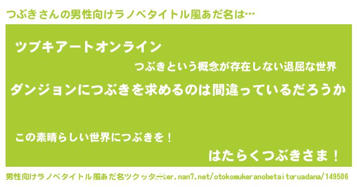 | 女子向けラノベタイトル風あだ名 | 『つぶきの卵を拾いまして』 |