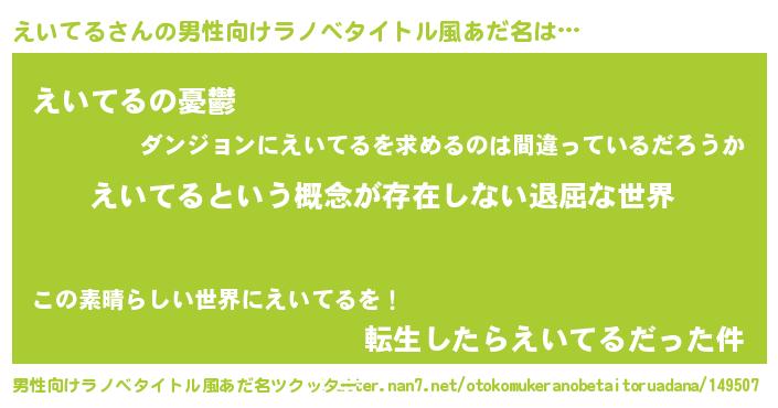 | 女子向けラノベタイトル風あだ名 | 『異世界で失敗しない100のえいてる』 |