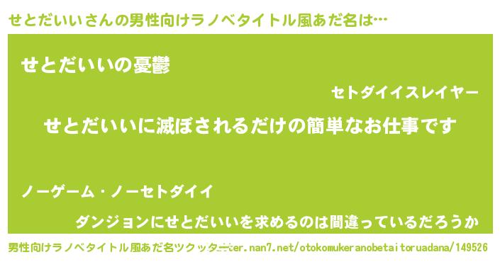 | 女子向けラノベタイトル風あだ名 | 『横柄せとだいいと宰相陛下』 |