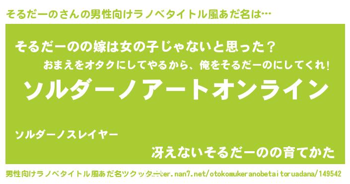 | 胡散臭い通販商品みたいなあだ名 | 『億万長者になれる水晶球…その名も「そるだーの」』 |