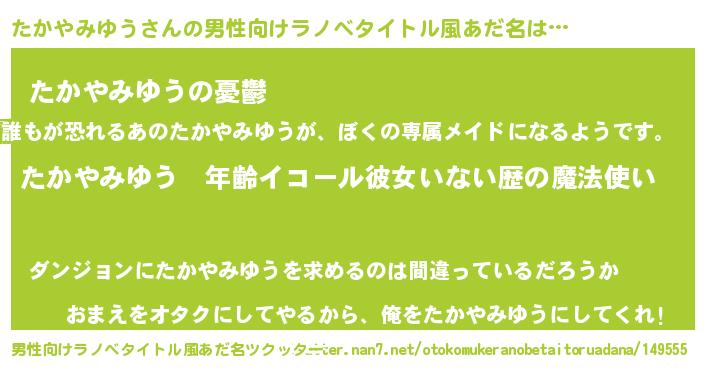 | 女子向けラノベタイトル風あだ名 | 『たかやみゆうの玉の輿計画!』 |