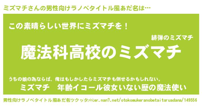 | 女子向けラノベタイトル風あだ名 | 『ミズマチアンティーク』 |