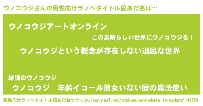 | 胡散臭い通販商品みたいなあだ名 | 『来世でも幸せになれる健康食品…その名も「ウノコウジ」』 |