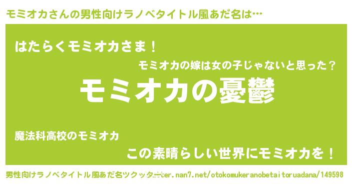 | 胡散臭い通販商品みたいなあだ名 | 『モテモテ間違いなし霊験あらたかなお札…その名も「モミオカ」』 |