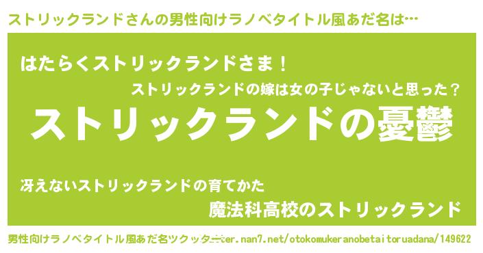 | 女子向けラノベタイトル風あだ名 | 『ストリックランド姫と円卓の騎士』 |