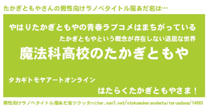 | 意味不明あだ名 | 『自称たかぎともや』 |