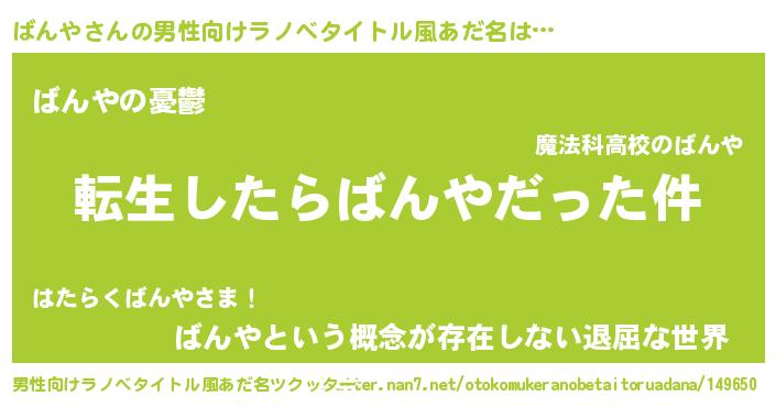 ばんやさんの男性向けラノベタイトル風あだ名をツクッター!