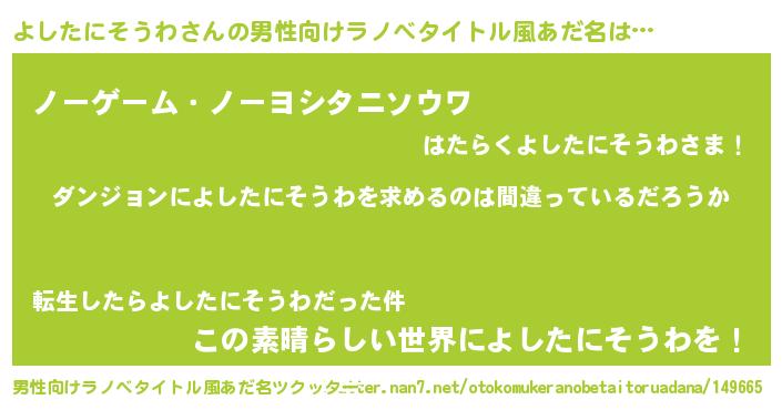 | 萌えアニメ | 主人公(よしたにそうわ)のあだ名『 よしぴょん』 |