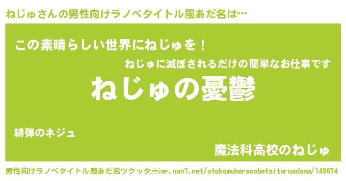 | 女子向けラノベタイトル風あだ名 | 『(仮)ねじゅのやんごとなき事情』 |