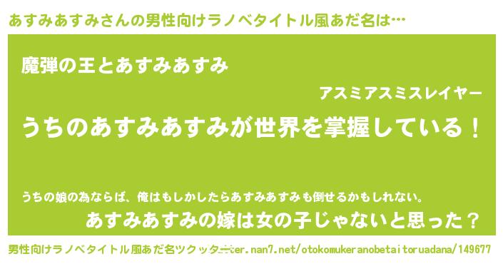 | 女子向けラノベタイトル風あだ名 | 『男装あすみあすみの憂鬱な任務』 |